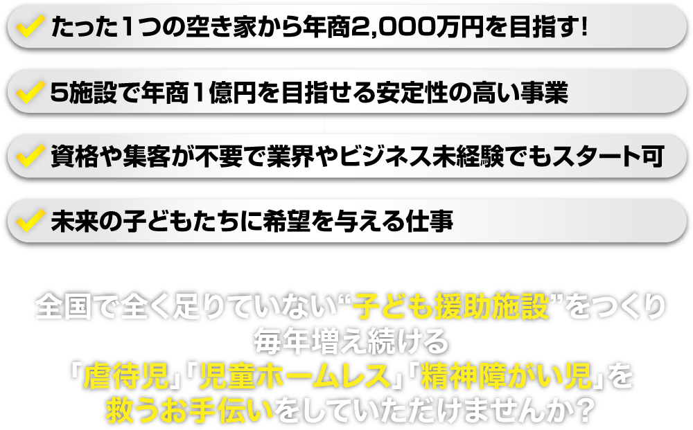 しかし、Sさんは障がい者グループホーム事業を転換し、児童福祉に方針を変更しました。